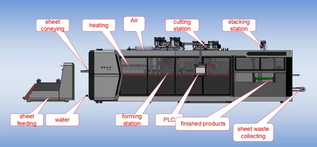 Operação totalmente automatizada: O equipamento realiza operações totalmente automatizadas, incluindo alimentação, aquecimento, formação, resfriamento, descarga, etc., reduzindo a intervenção manual e melhorando a eficiência da produção.