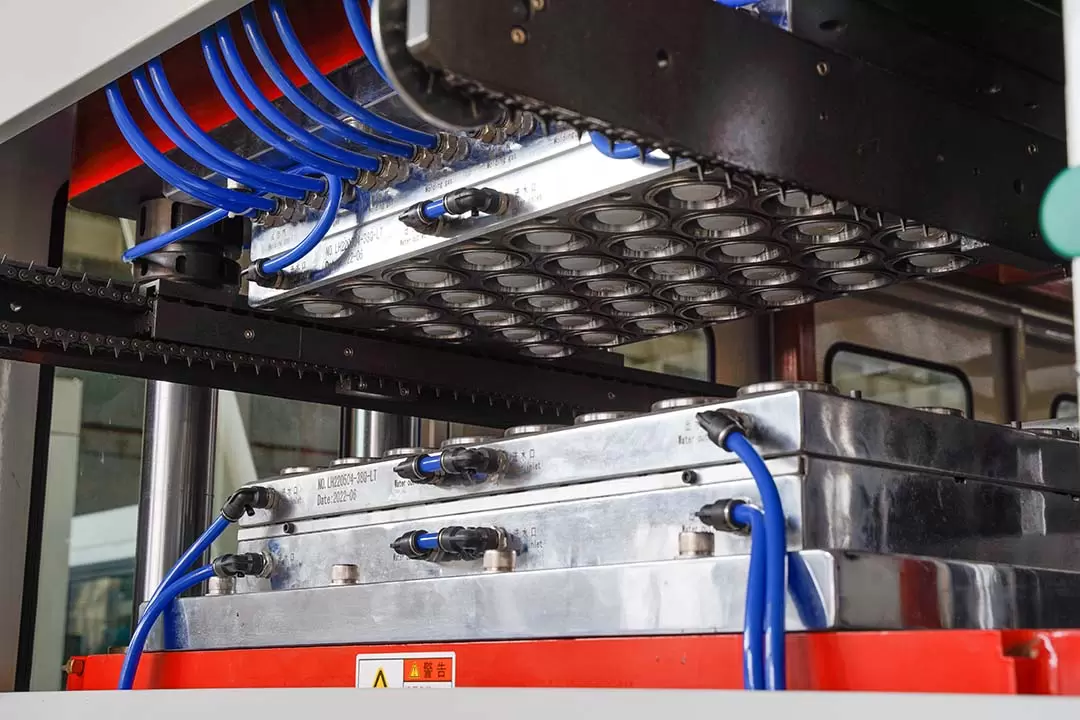 Controle de pressão de moldagem: por meio do sistema preciso de ajuste de pressão, garante que cada copo plástico possa ser moldado sob pressão apropriada para reduzir a taxa de defeitos.