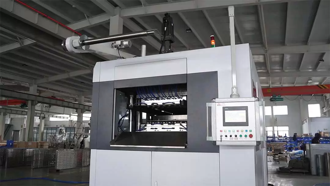 Aquecimento de chapas: chapas plásticas (como PET, PP, PS, etc.) são alimentadas na área de aquecimento e aquecidas até a temperatura de amolecimento apropriada por meio de aquecimento elétrico ou sistema de aquecimento infravermelho.