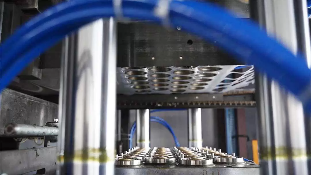 Resfriamento: O copo formado é mantido no molde por um período de tempo para esfriar, geralmente usando um sistema de resfriamento a água ou a ar para garantir que o formato do copo seja estável.