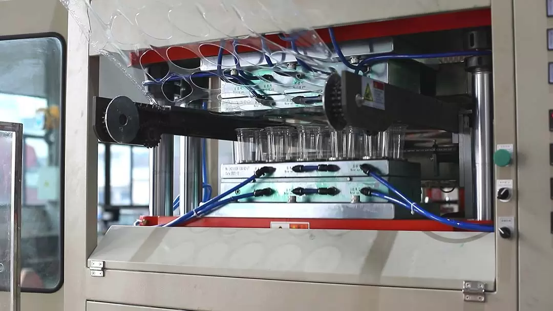 O sistema avançado de controle PLC alcança o controle preciso de parâmetros como temperatura, pressão, tempo de moldagem, etc., garantindo a consistência da qualidade de cada copo plástico.