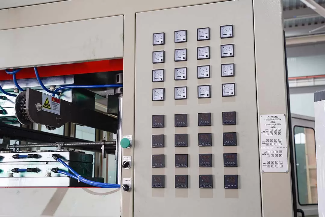 Controlador de temperatura: O controlador de temperatura é o principal componente de controle da máquina de termoformagem, recebendo sinais do sensor de temperatura e mantendo a temperatura definida ajustando a potência de saída do aquecedor para obter uma regulação precisa da temperatura.