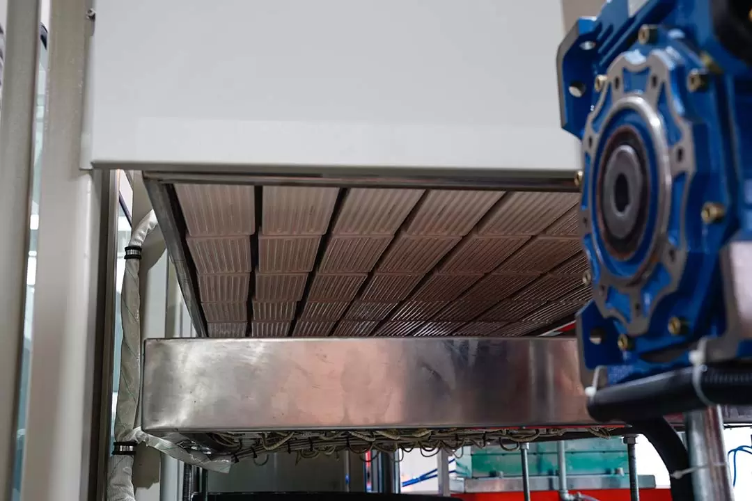 Aquecimento de placas: O aquecedor de uma máquina de termoformagem de plástico é composto por várias placas de aquecimento de cerâmica dispostas em conjunto. A corrente elétrica é usada para gerar calor e aquecer a chapa ou folha de plástico a uma temperatura adequada para a conformação. Os aquecedores geralmente são distribuídos em diferentes áreas da máquina para garantir um aquecimento uniforme.