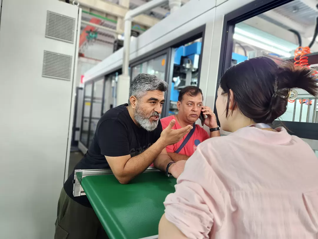 Em 21 de agosto de 2023, nosso cliente indiano veio à nossa fábrica para estudar. Como o cliente estava preocupado com a dificuldade de solicitar o visto de engenheiro de comissionamento da China para a Índia, tomou a iniciativa de vir à nossa fábrica para aprender sobre os equipamentos, a fim de produzir e enviar o mais rápido possível. Agradecemos também ao cliente pelo nosso apoio. Com compreensão e apoio, o cliente adquiriu uma máquina de termoformagem de plástico automática de três estações TTF-700A e 11 conjuntos de moldes em nossa empresa, que são usados para produzir caixas de viagem de 8 compartimentos e caixas de viagem de 3 compartimentos de materiais PP e caixas de plástico tipo concha PET de diferentes profundidades. Usado principalmente para embalagens de salada de frutas.