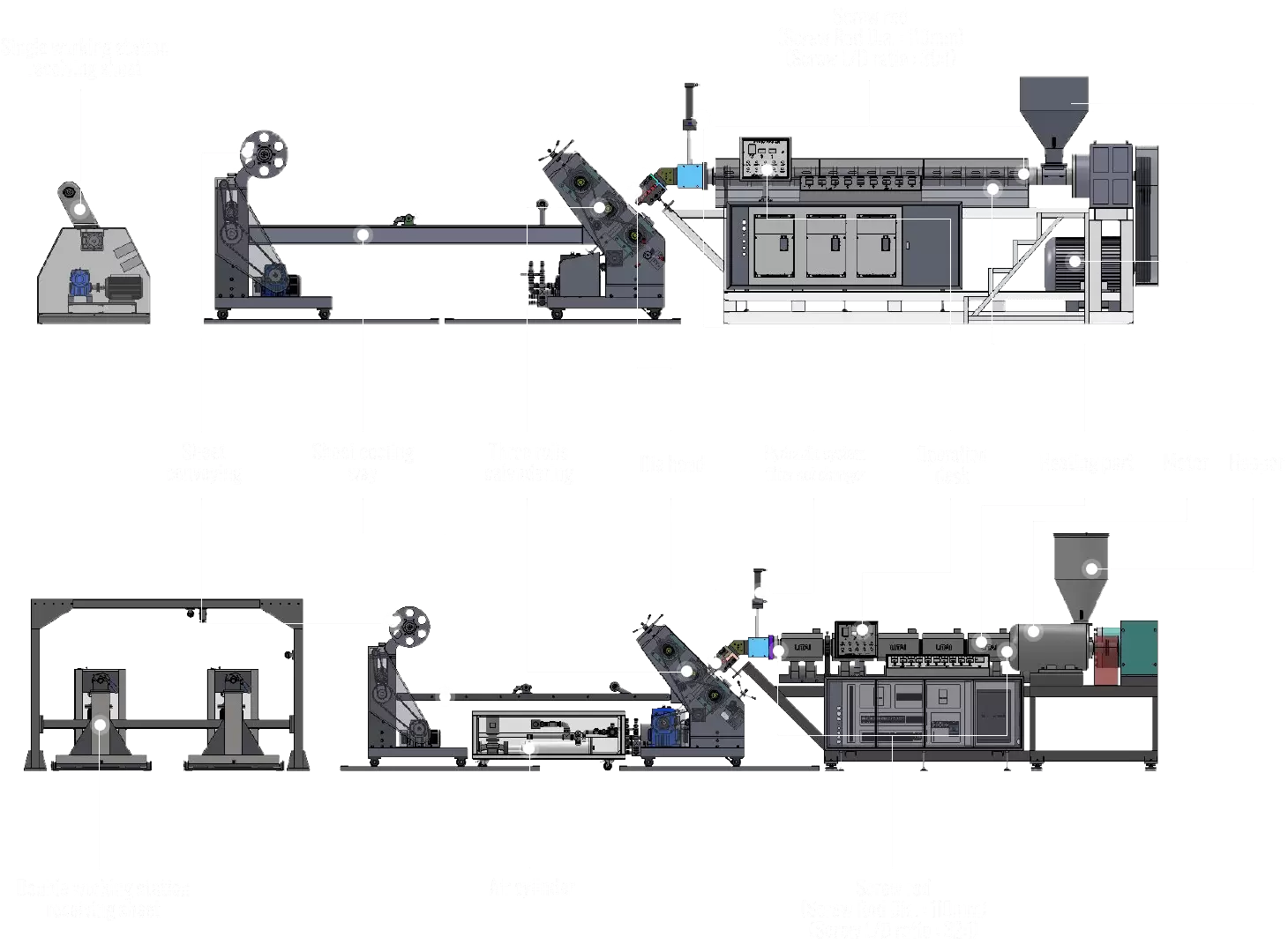 Parte de aquecimento de folha: aquecimento de material plástico; extrusão do material para o trocador de tela após a filtragem. Com dureza ideal, forte resistência à corrosão e longa vida útil.