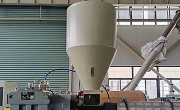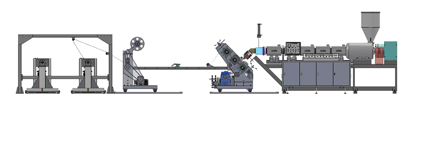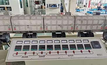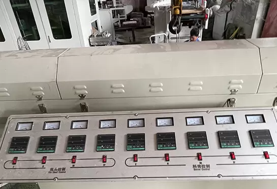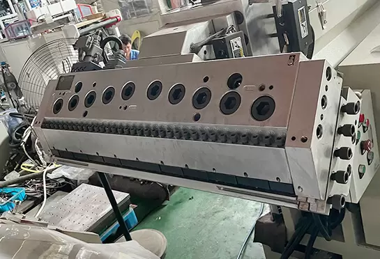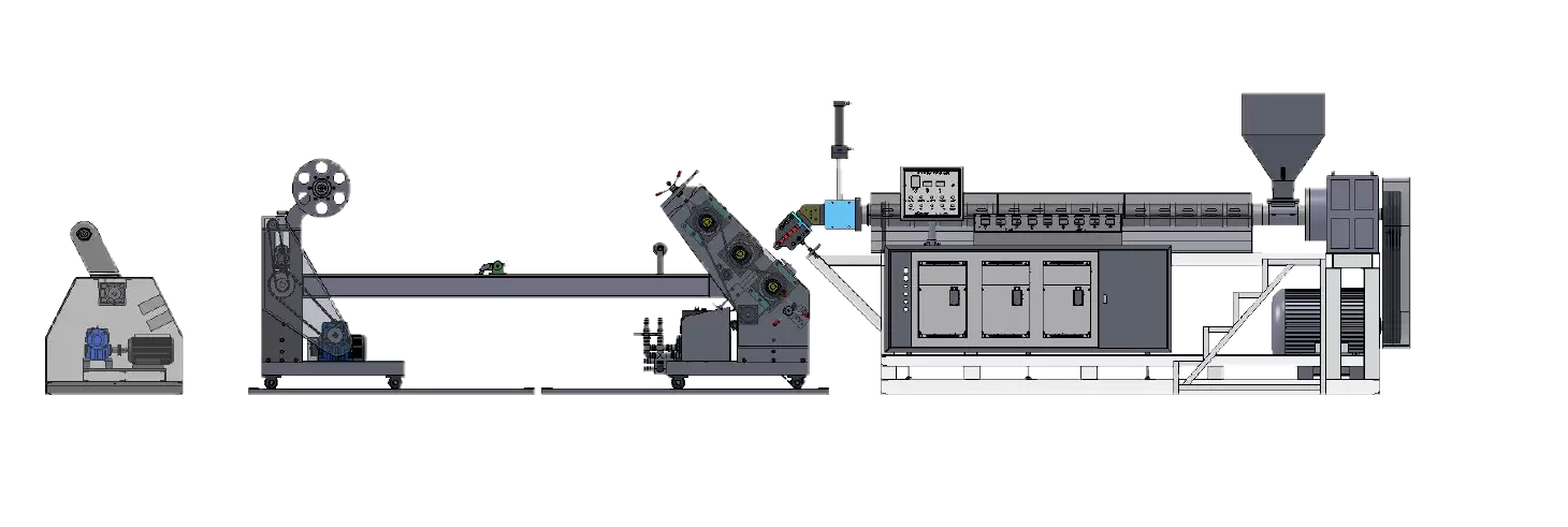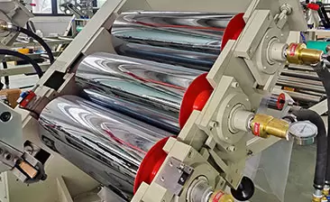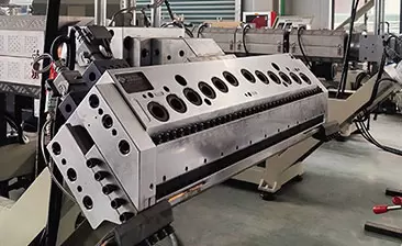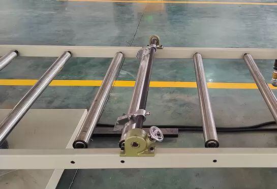 Peça de três rolos pressionando a matéria-prima extrudada pela matriz em forma de placa e resfriando para formar; três rolos são três rolos oblíquos, estrutura simples, fácil operação e manutenção.