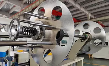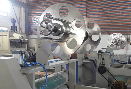 A peça de enrolamento de estação dupla adota comutação do tipo carrinho, rolo de enrolamento com eixo de gás, fácil desmontagem, alta eficiência, baixa intensidade de trabalho.