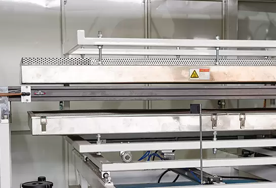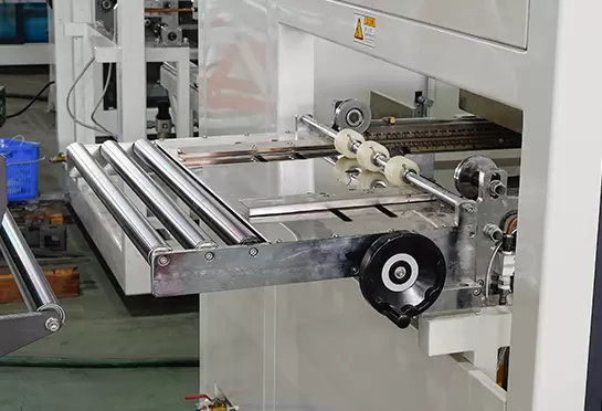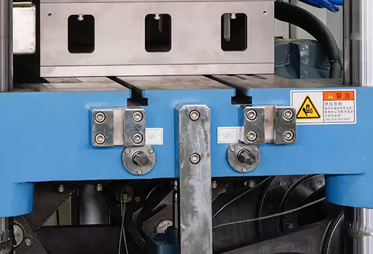 A corrente dentada feita de 65#Mn, ajudando a transportar a folha. Trilhos de alumínio com refrigeração a água, economize água.