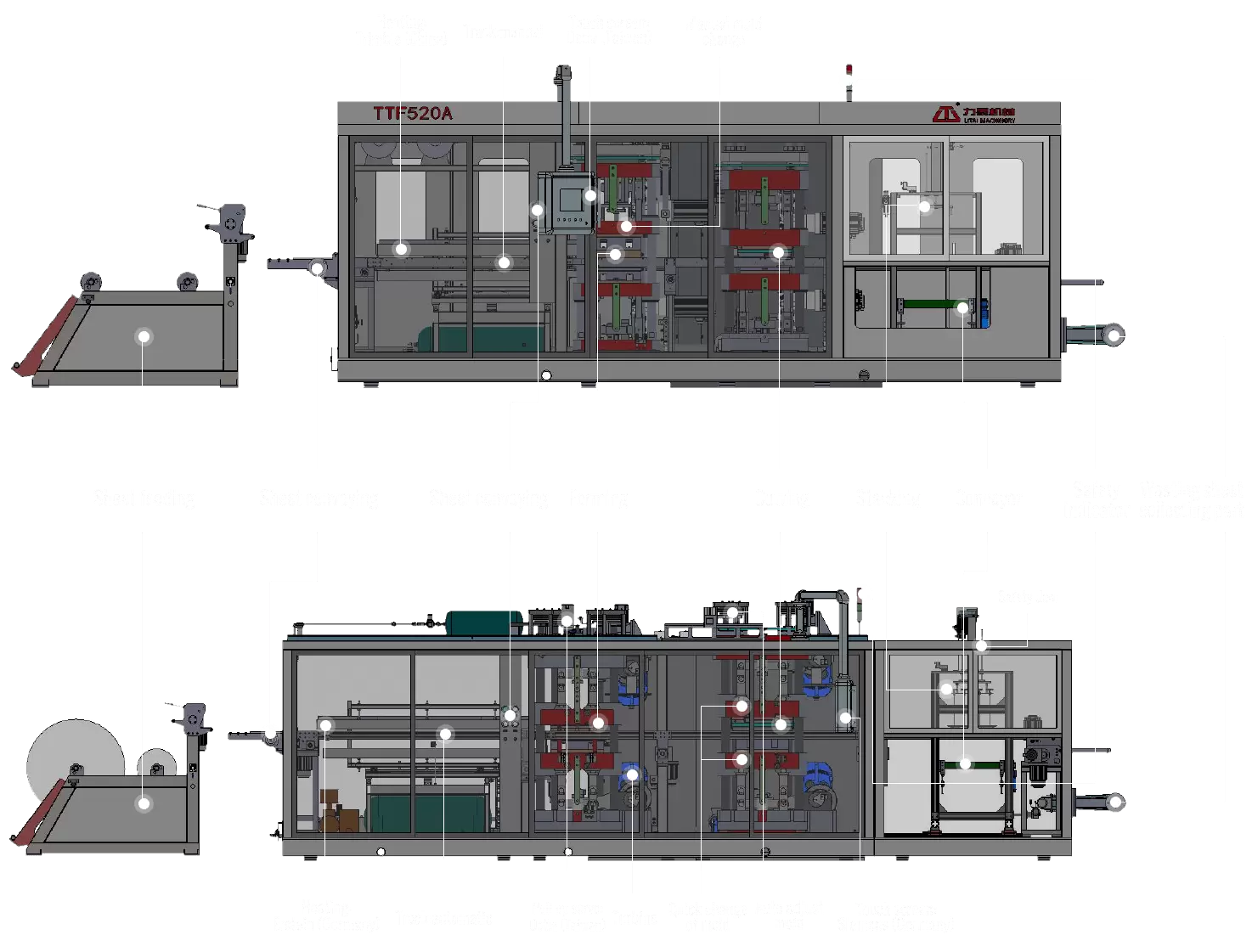 A parte de alimentação e aquecimento tem interruptor optoeletrônico para evitar erros de operação do processo de produção.